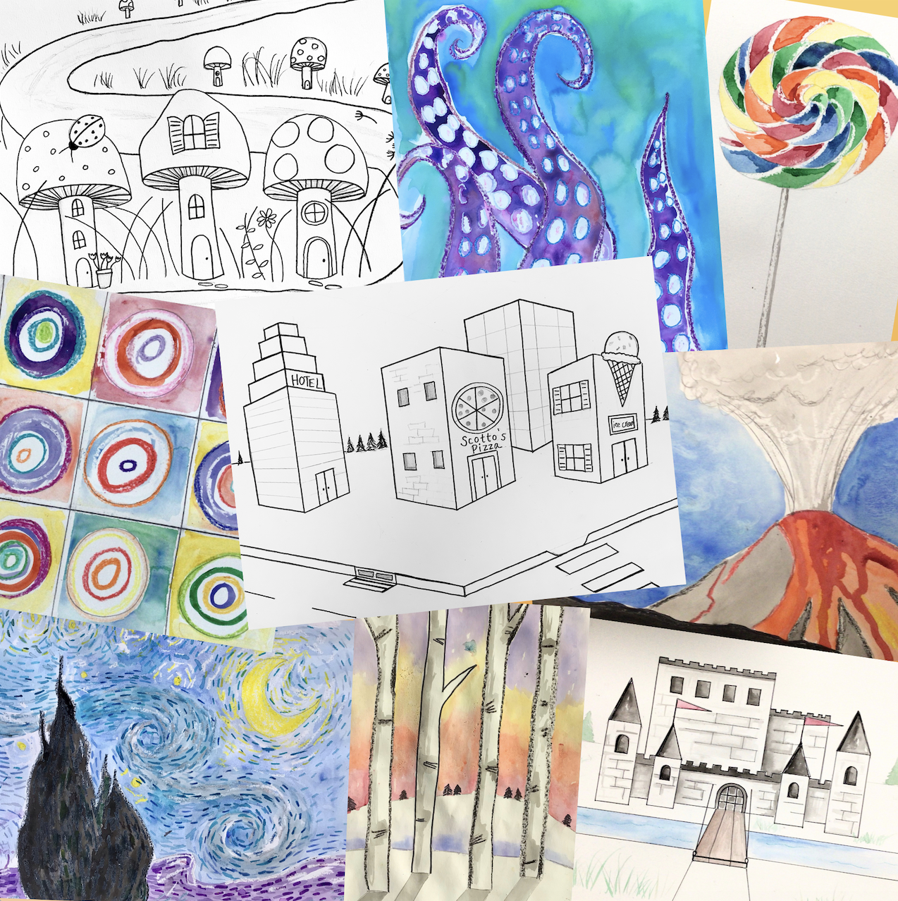 Fun and engaging watercolor and mixed media art classes for kids ages 6-10. Perfect for homeschoolers and after-school learners, our step-by-step lessons help young artists build confidence through drawing and painting.
